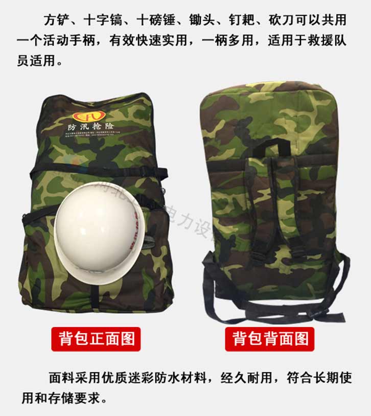 防汛搶險組合式工具包特點:靈活性好,質量可靠,可在惡劣的環(huán)境下單兵背負作業(yè),攜帶方便,體積小、相互結合該組合工具配備齊全適用于救援隊員適用。可根據需求定制產品配件及功能性。