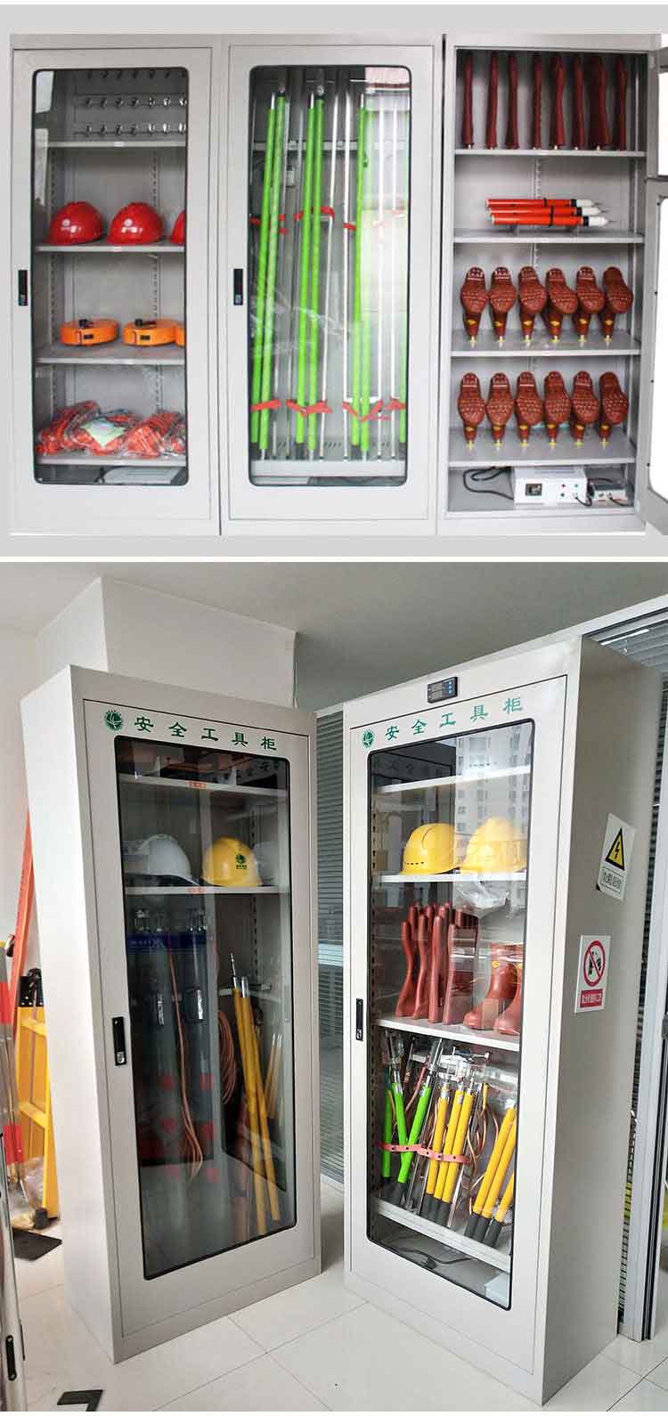 電力安全工具柜又稱安全工器具柜,按功能可以分為普通排風除濕柜,智能烘干除濕柜,智能抽濕除濕柜等 外殼選用1.2優(yōu)質冷板,采用磷化鋅系、藝術型靜電噴涂,高強度鋼化透明玻璃(外觀色為微機灰)。接地線均配有接地線繞線架及帶夾反光編號牌,使接地線纏繞規(guī)范不易損壞,擺放整齊使用方便;絕緣手套配有防粘連撐板,絕緣擋板、絕緣棒、驗電筆、操作桿均設有橡膠墊定位卡,安全帶、腳扣、鑰匙設有專用掛鉤,標示牌按種類分格放置,圍網(wǎng)配有專用包,網(wǎng)桿配有專用筒,網(wǎng)桿座分格放置,防毒面具配有專用箱,呼吸器設有專用滑板。廣泛應用于各種電壓等級的變電站、集控站、線路工區(qū)以及電力公司客服中心等單位和部門,并適應不同溫濕度地區(qū)的使用。